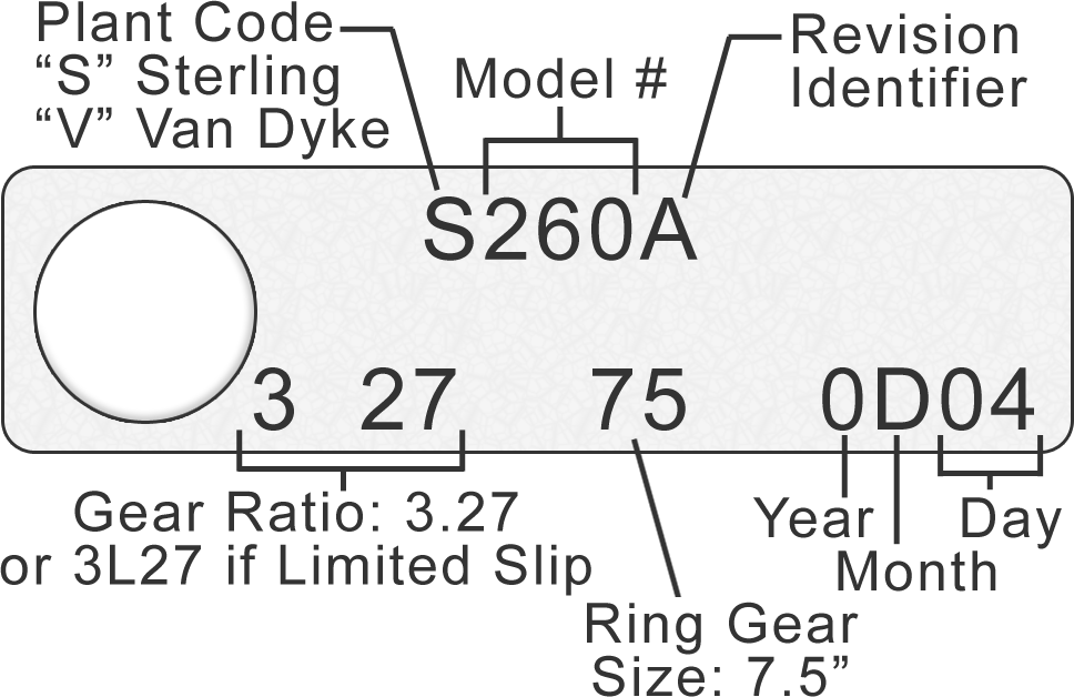 When repairing or upgrading differential parts, the first and most important step is to identify your existing axle / differential. Ensure accuracy by checking the tag numbers or stamps on the axle or by utilizing the RPO codes on GM vehicles.